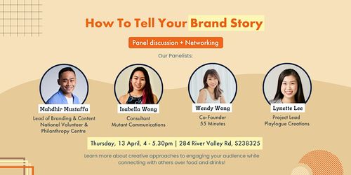 We have invited 4 esteemed speakers who will be on a panel to share their own experiences, insights and tips on how they have successfully told their brand story.